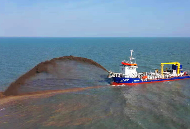 利用挖泥船將航道內的泥土挖出后,使用管線將挖出的泥土排放到需要進行回填的港口或碼頭上,通過泥土回填的方式來使港口和碼頭填筑到需要建設的高度,這便是吹填工程。